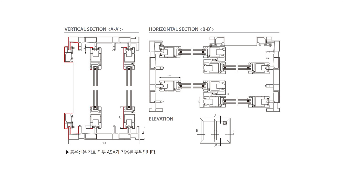 1등급(이중창) VBF230TM_내.외 : 22T로이복층(아르곤) 0..83W/(㎡·K)